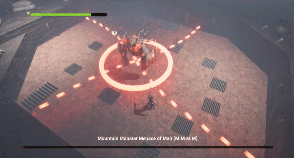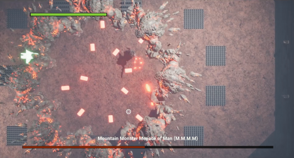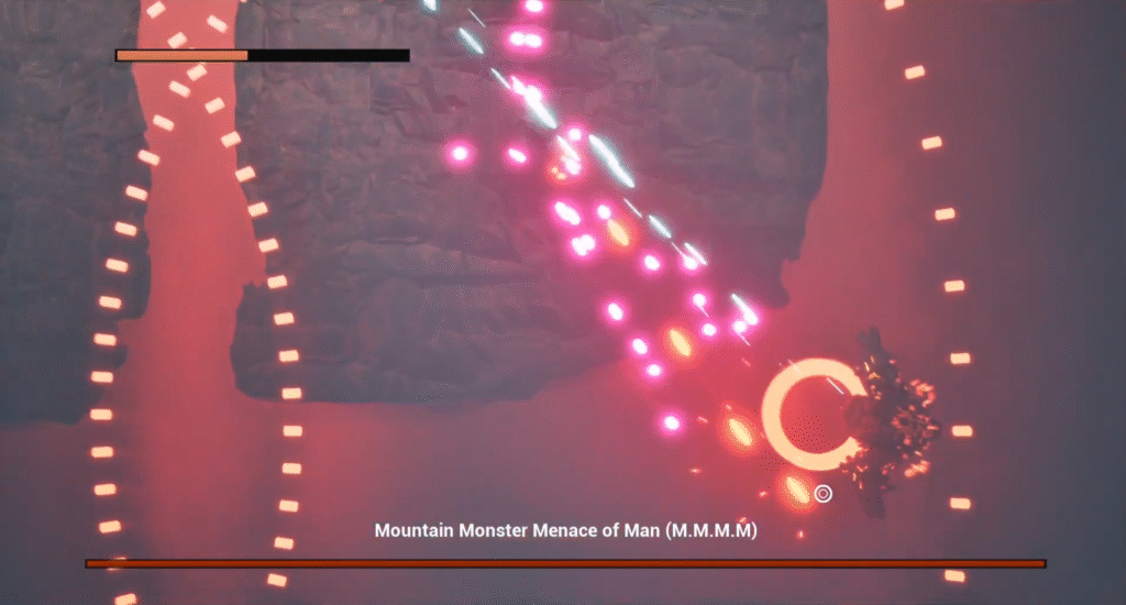With so much happening on the screen at the same time, the player character easily got obscured by obstacles and projectiles. To avoid losing sight of the player, I implemented an obscured-player visibility system, which helped players and also the team to experiment freely in developing boss attacks.
